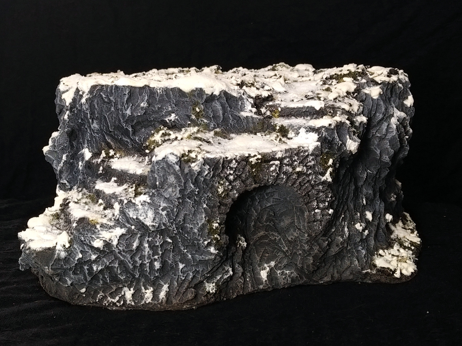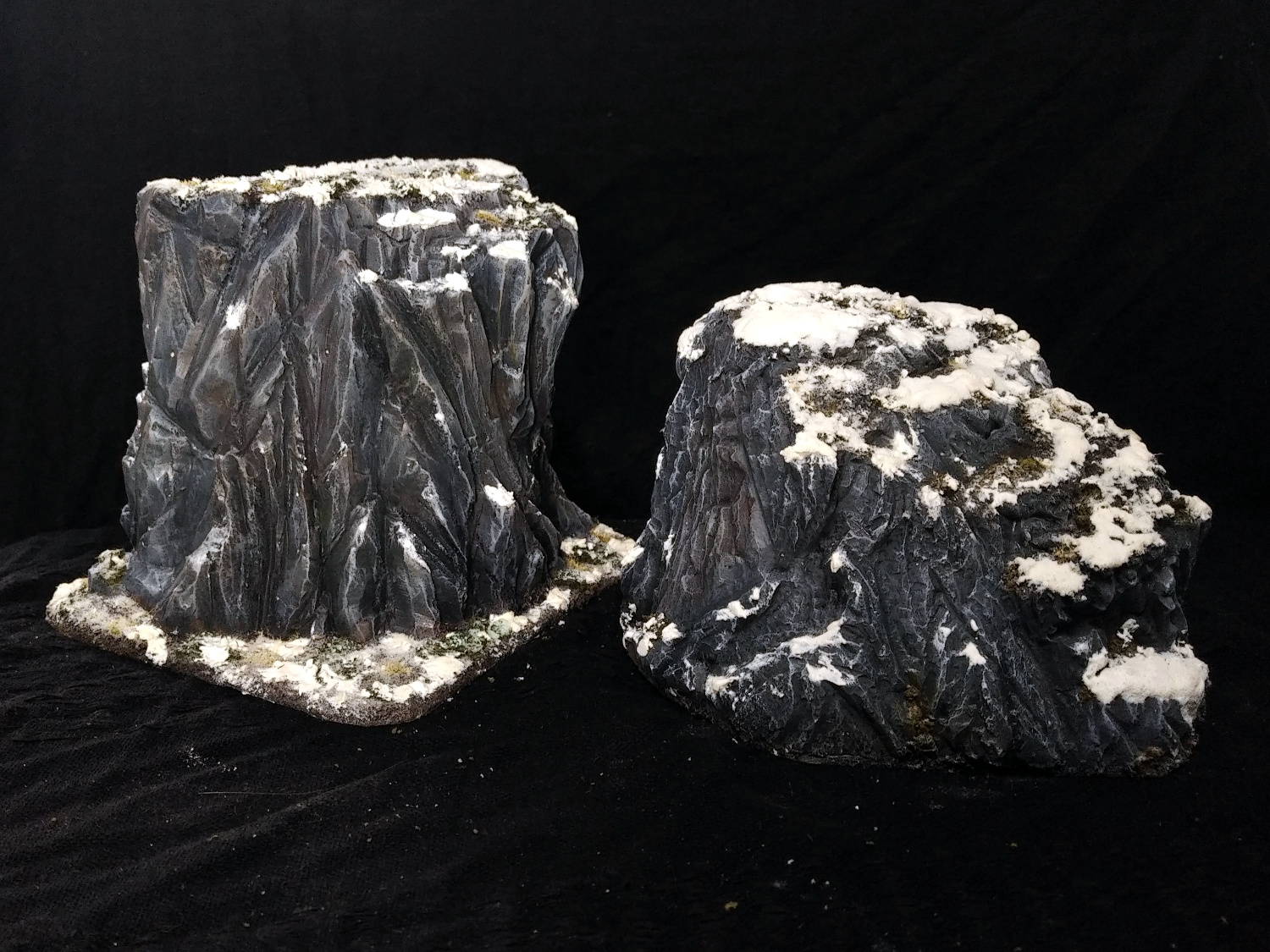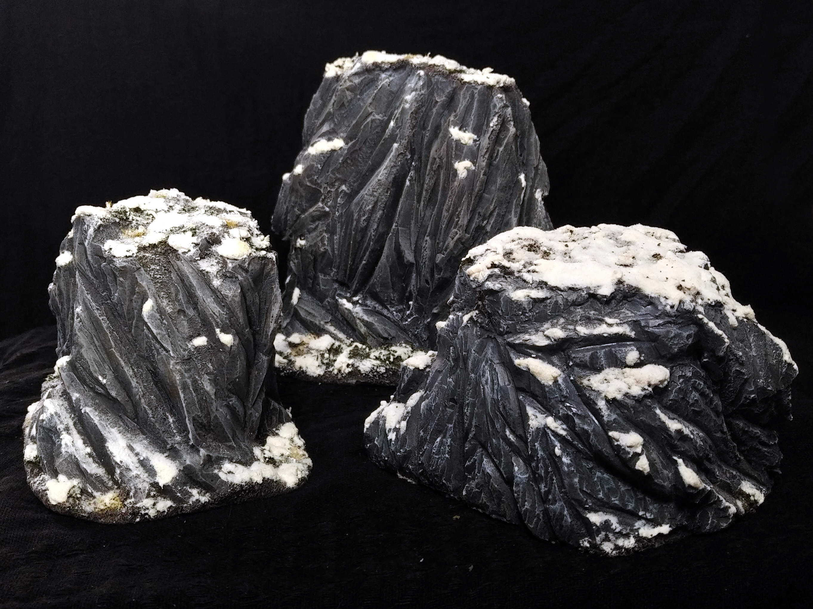 Nachdem ich zuletzt wenigstens die Überbleibsel von Zivilisation im Program geht es jetzt wieder raus in die Wildnis. Genauer gesagt in die Berge zwischen Felsen und Klippen. Ich hatte für die Winter Kampagne einen Haufen an Felsen und Klippen gebastelt. Im Großen und ganzen sind die Folgend Felsen alle aus Gips gefertigt. Grundlegend gibt es eigentlich immer irgendein leichtes Grundgerüst (manchmal Styrodur, manchmal hasendraht) auf das ich dann Gips aufgetragen habe. Die ganzen Felsen Projekte zählen wenn ich mich richtig erinnere zu den ersten Versuchen durch das Schnitzen von Gips schöne Felswände zu erhalten. Damals hab ich noch echt lange für den Sch** gebraucht. Inzwischen bin ich darin zum Glück etwas geübter (unter anderem gerade wegen diesen Felsen ) und verliere micht nicht so leicht in Details.