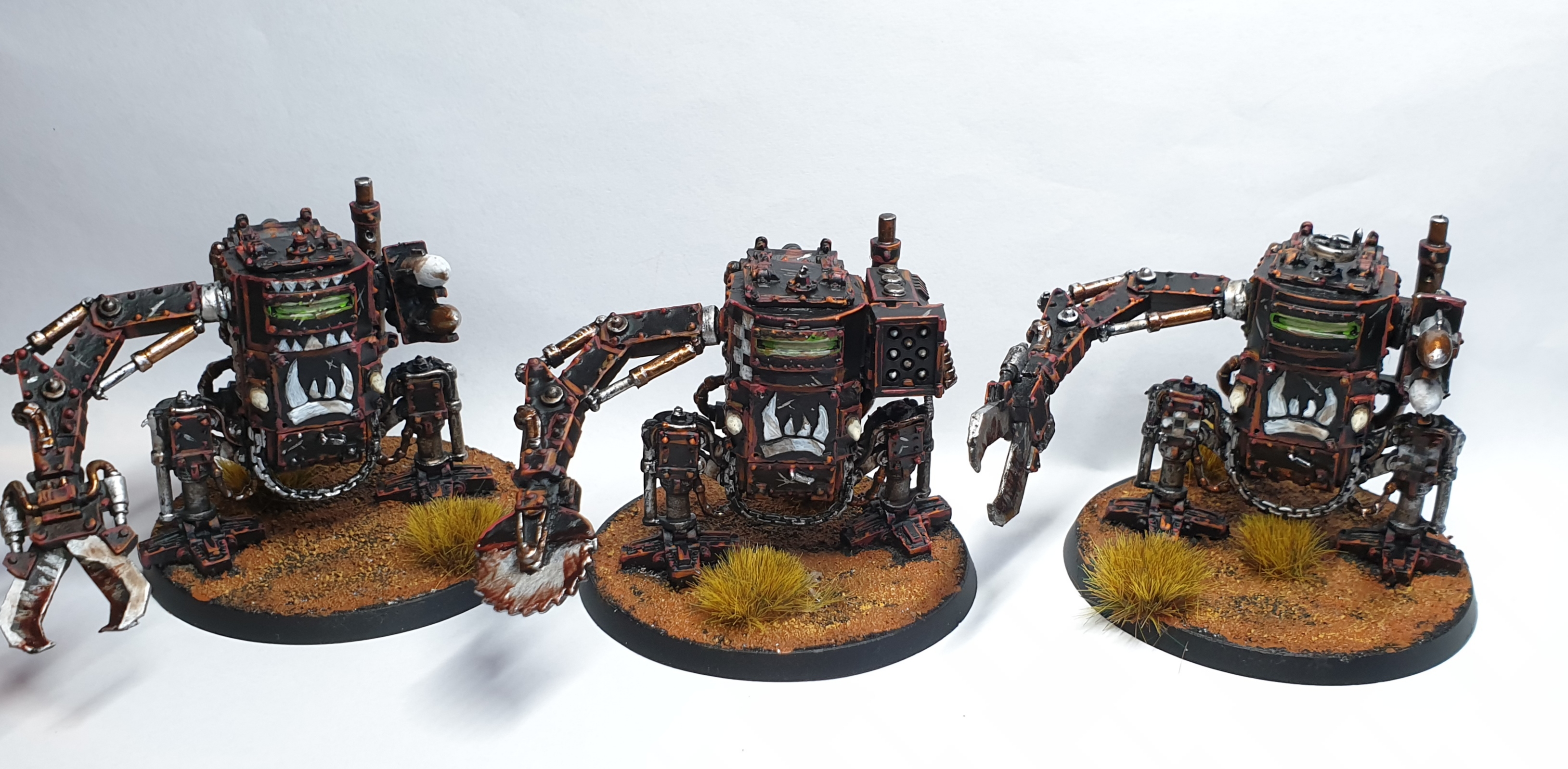 Vermillion blieb bei Kampfmaschinen auf zwei Beinen. Ist aber zurück zum 40k Maßstab und rüber zu Orks gekommen. Es wurden ein paar Killakanz und ein Deff Dread für die Challenge bemalt. Damit erweitert er seine beeindruckende Sammlung von Orks um ein paar weitere Modelle.