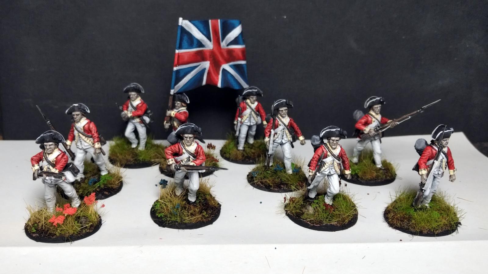 Soeben habe ich meinen ersten Trupp für Muskets & Tomahawks fertig gestellt. Einen 10er Trupp britische Regulars:
