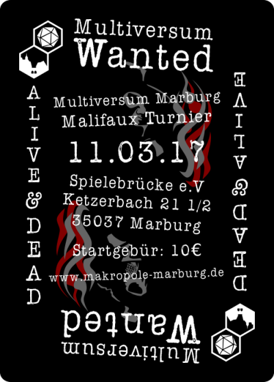Als nächstes steht bei mir mehr Gelände auf dem Plan. In kürze Veranstalten wir in Marburg das erste Malifaux Turnier: