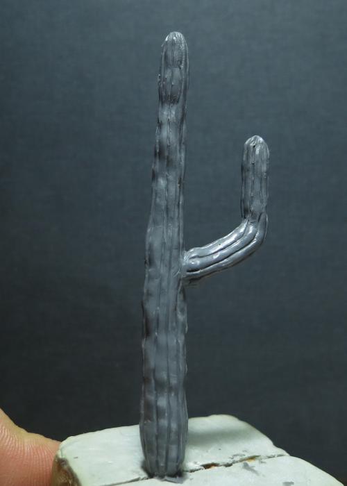 Für den Kakteen-Wald will ich gerne ein bis drei unterschiedliche Kakteen aus Fimo modellieren und die dann entweder in Gips oder Resin abgießen. Der obige backt gerade im Ofen und wird dann die Tage mal abgegossen.