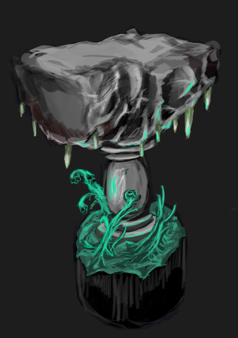 Artemis, soll wie man vielleicht erkennt in die Unterwelt verfrachtet werden. Unten auf der Base soll ein bisschen stygische Seelensuppe wabern und ich hoffe die dann mit der Bemalung ein wenig zum “leuchten” zu bringen. In der Mitte der Base erhebt sich dann eine Säule auf der eine Felsenbrücke ruht. Für die Säulen habe ich mal ein paar Digitale 3D Konzepte gebastelt: