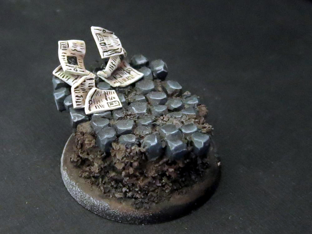 Wie schon bei der Printing-Press wollte ich gerne noch ein paar Zeitungen mit aufs Base packen um das Reporter Thema auch auf der Base aufzugreifen. Gebastelt hatte ich sie aus dünnem (unter Hitze) zurecht gebogenen Plasticcard. Die Bemalung war ne ganz schöne Fitzelarbeit, aber ich finde es hat sich echt gelohnt.