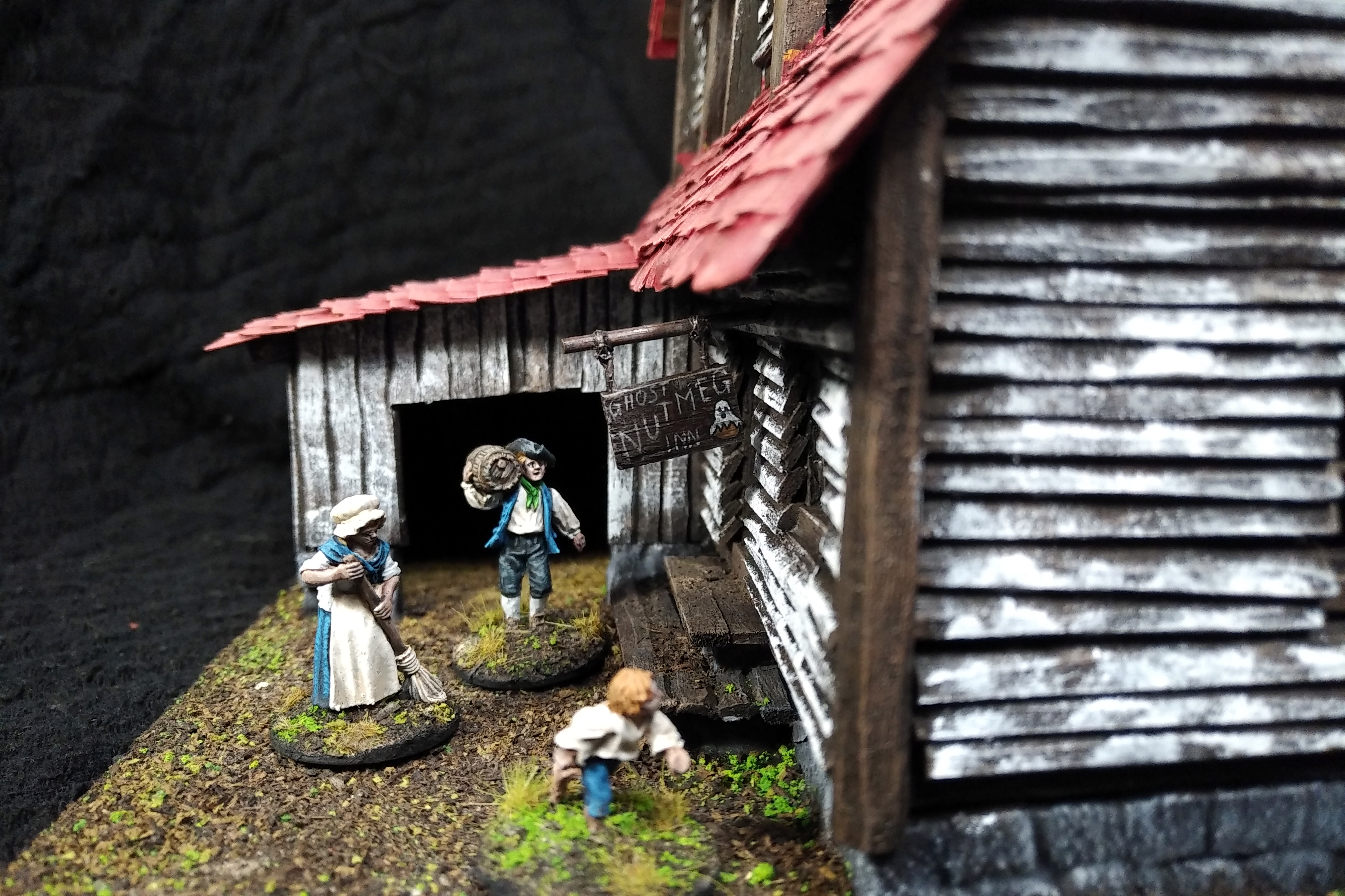 Nachdem ich nun vor ner Weile die Zivilisten für Muskets and Tomahawks bepinselt hatte, musste auch einfach ein Ort her an dem die sich von den Strapazen des Alltag erholen können, indem sie ihre Sorgen in Bierkürgen ertränken. Kurzum es musste ein Pub her.