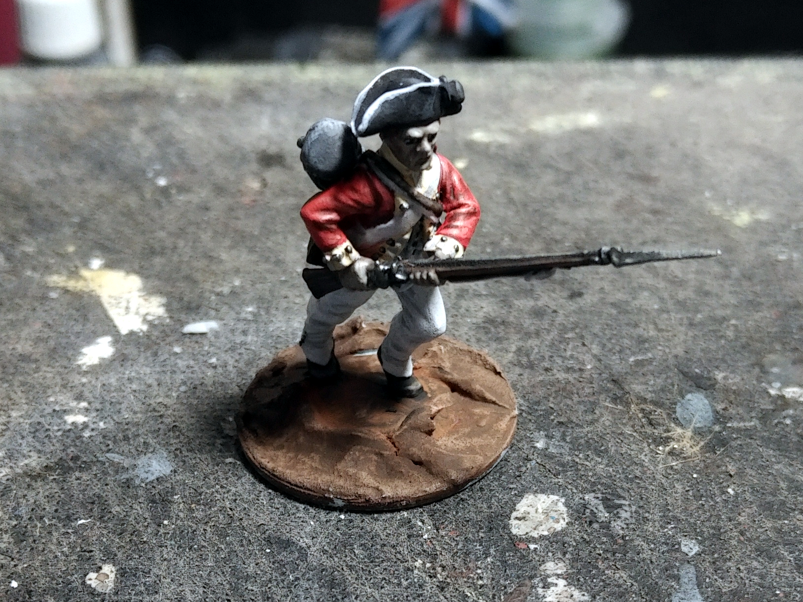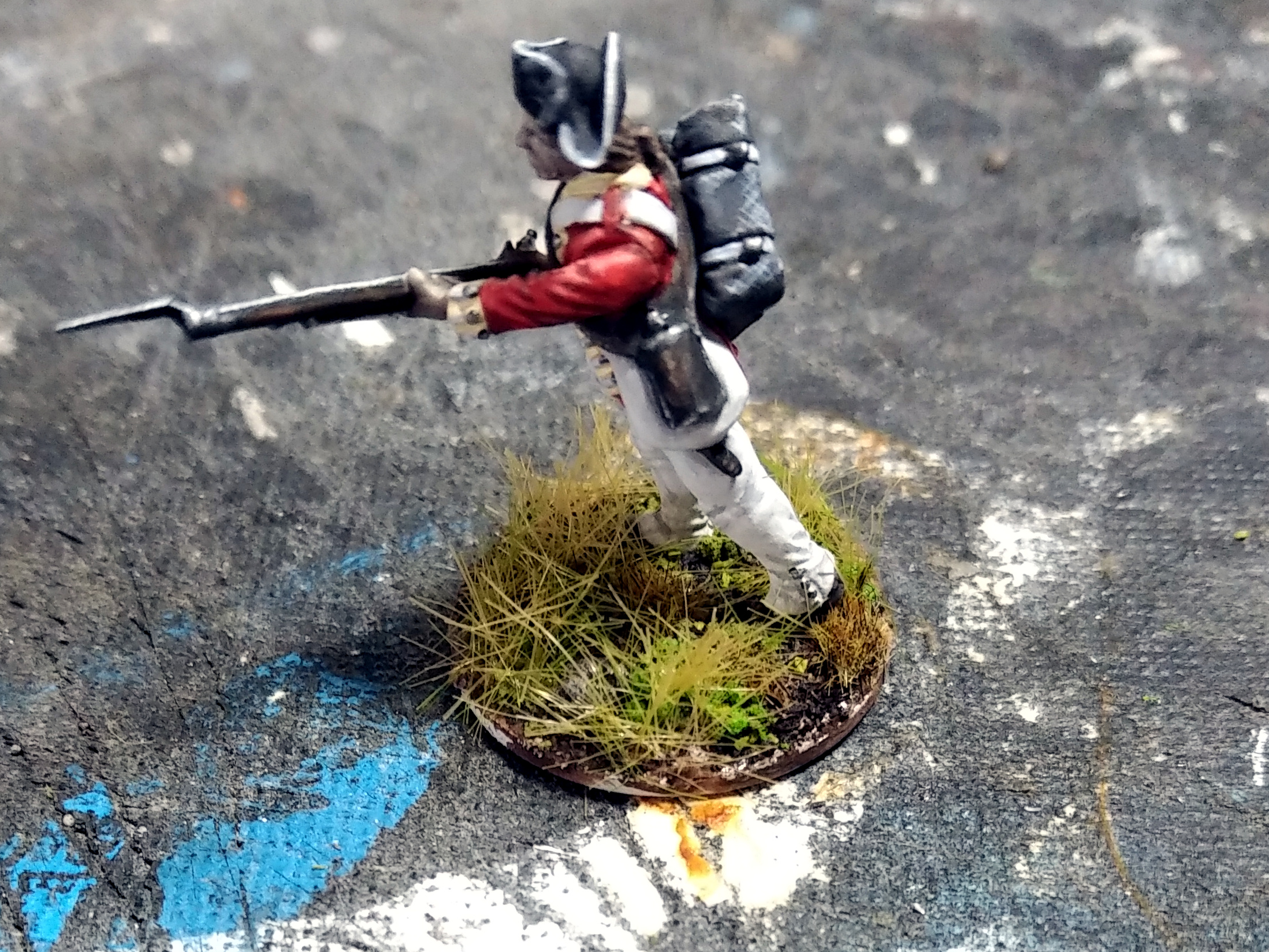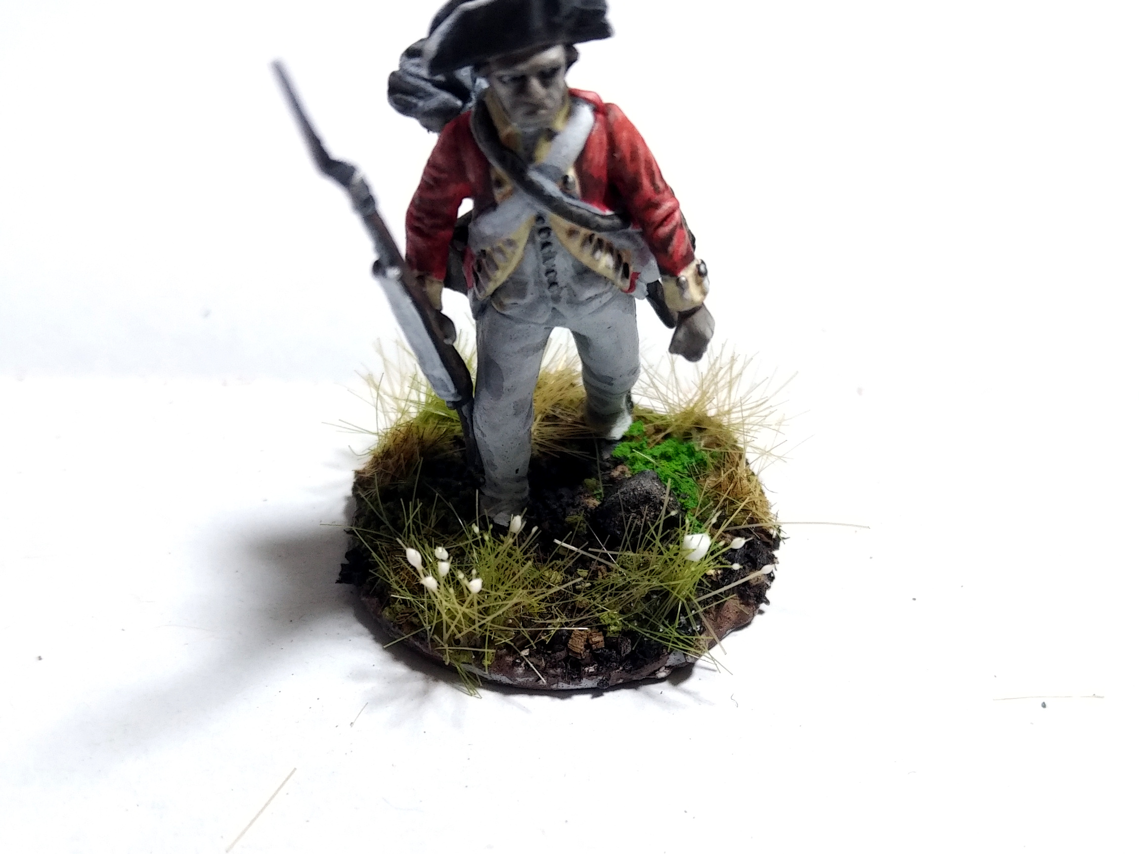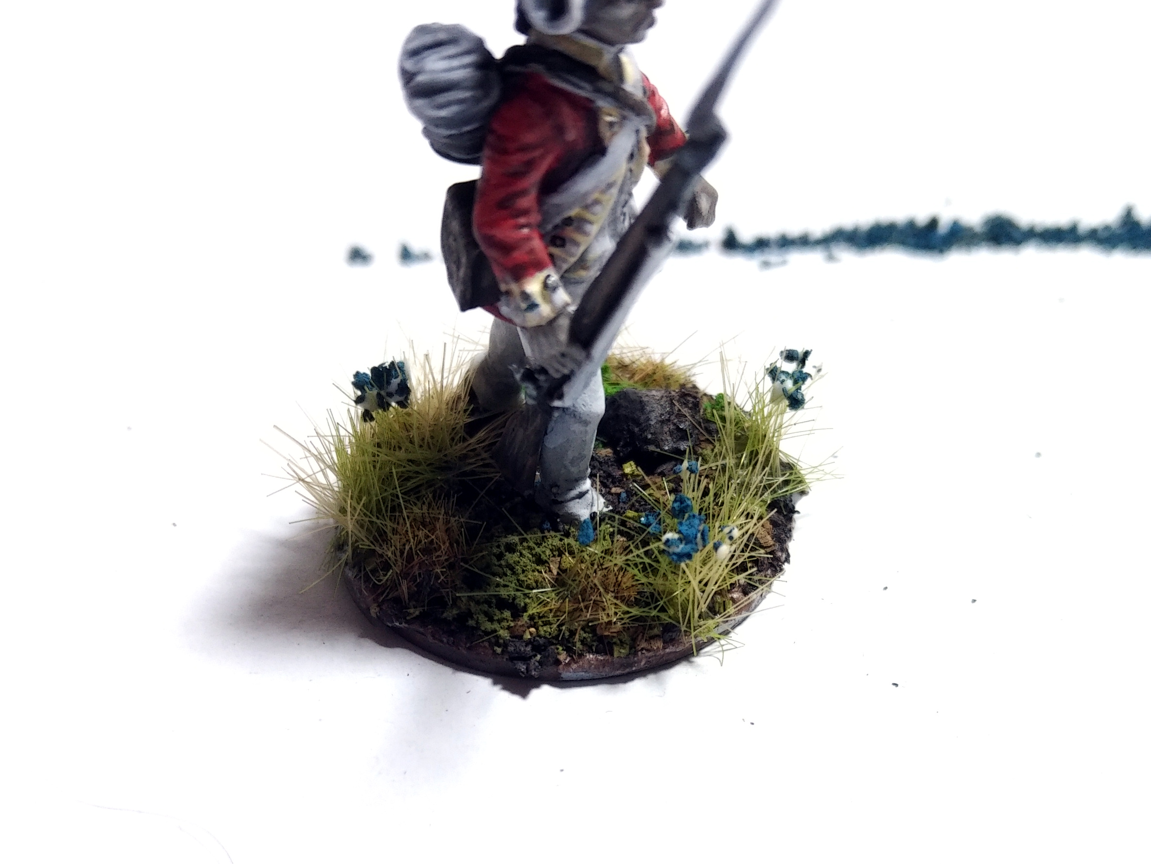 Inzwischen wird an meinen Bases für Spiel-Miniaturen extrem wenig gemalt. Irgendwann während des Bemalens der Miniatur wird zwischendurch mal die Base kurz Braun gepinselt. Für den Fall dass doch mal ein wenig Farbe durch die Base-Gestaltung durchschimmert. Bei rein schwarzer Grundierung kann man den Schritt aber auch getrost weglassen. Vermutlich auch bei jeder anderen Grundierung, aber irgendwie finde ich es ab einem gewissen Zeitpunkt beim malen immer ganz nett wenn die Base schonmal ne Farbe hat.