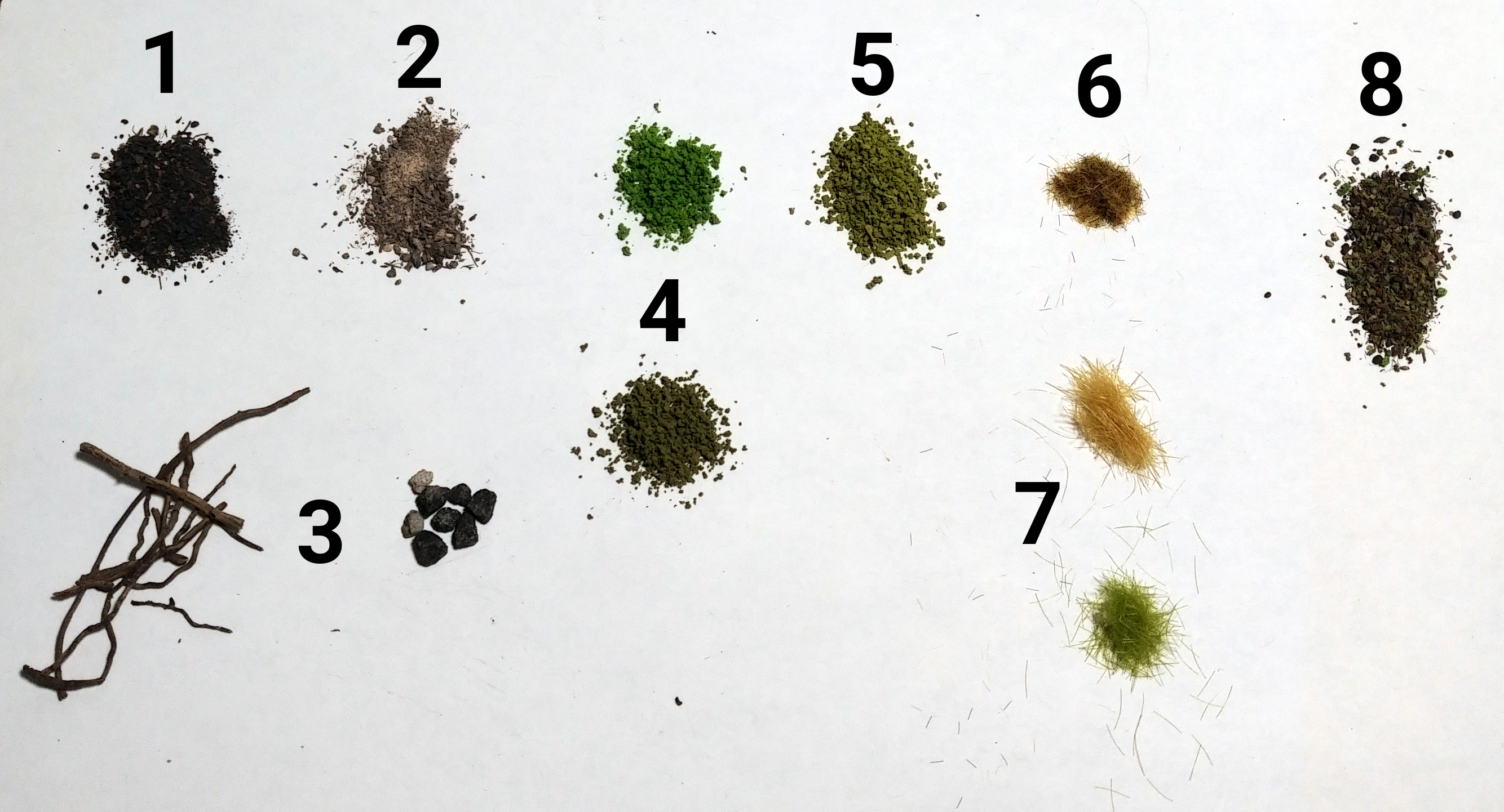 (8) Flock Reste Ich kippe immer mal die Reste von Flock und Erde zusammen. Das ergibt auch ne großartige Basis für die Basegestaltung. Chaotische Mischungen wirken einfach schön natürlich.